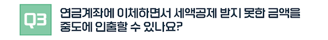 가장 먼저 세액공제를 받지 않고 저축한 금액이 있으면 이 돈부터 인출합니다. 이 돈은 저축할 때 세액공제 받지 않았기 때문에 인출할 때도 세금을 부과하지 않습니다. 연금으로 수령하든 중도인출하든 마찬가지입니다.