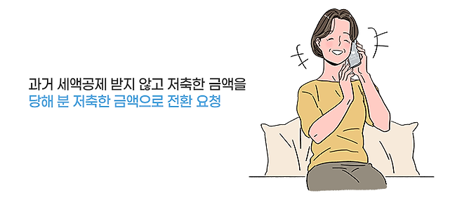 이럴 때는 금융회사에 과거에 세액공제 받지 않고 저축한 금액을 당해 분 저축한 금액으로 전환해 달라고 요청하면 됩니다. 그러면 그해에는 저축을 하지 않고 세액공제를 받을 수도 있습니다.