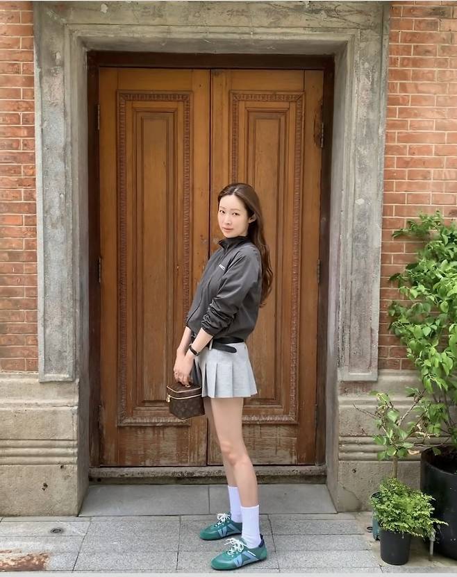 배우 차정원이 애슬레저 아우터와 플리츠스커트로 하이틴 무드 가득한 데일리룩을 선보였습니다
