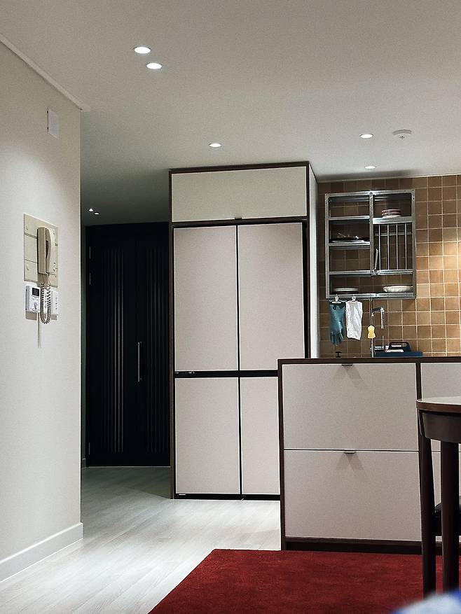 거실 소파에 앉으면 보이는 간살도어의 모습은 이래요. '간살 포기 못해. 검은색 포기 못해.'하는 고집으로 계속 마음을 다잡았던 기억이 납니다. 어떠신가요? 저에게는 참 소중한 곳인데, 여러분들께도 영감을 주는 부분이 하나쯤은 있는 영광을 제가 벌써 누렸을까요?