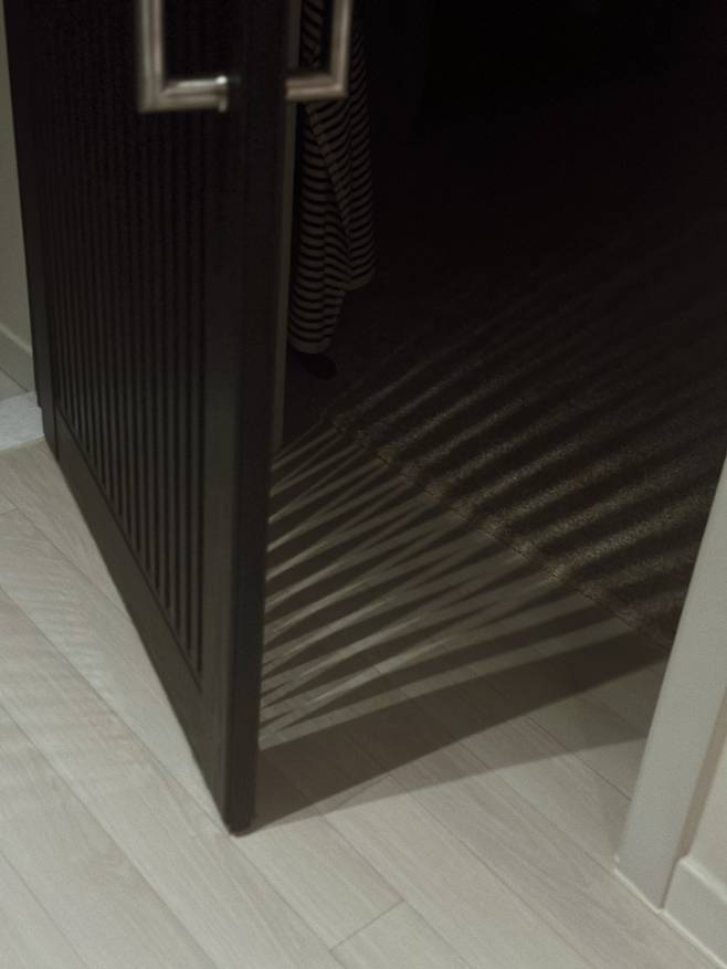 그렇게 중문 설치를 결정하고 동양적인 느낌을 살리기 위해 '간살 도어' 디자인을 요청드렸는데요. 간살 도어 자체가 아주 단단한 느낌은 아니다 보니 문을 여닫을 때 약간 흔들리는 단점이 있었어요. 이 부분은 인테리어 실장님도 중문 업체 사장님과 많은 소통을 해주시고, 남편도 내구성이 약해도 되니 이 디자인으로 가자고 해준 덕분에 드디어 마음에 드는 첫인상을 마주할 수 있게 되었습니다.