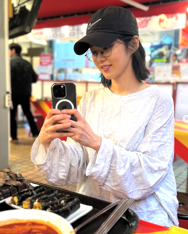 또한, 박시한 티셔츠에 캡 모자, 알이 큰 안경까지 더해진 캐주얼 스타일은 ‘연예인’이라기보다 친근한 옆집 언니 같은 느낌을 준다.