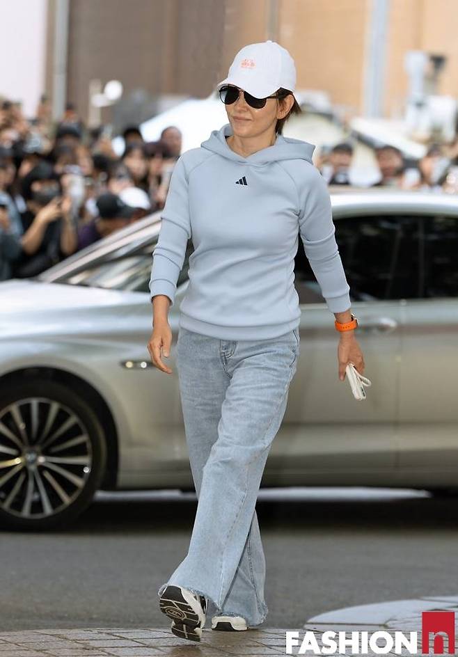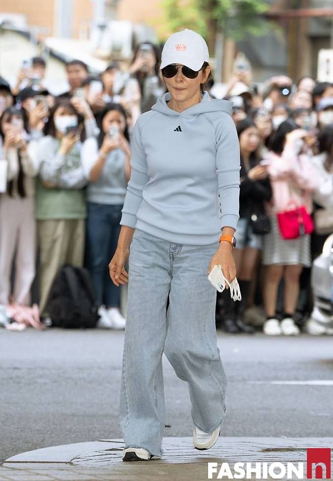 이날 이미숙은 후드티와 라이트한 데님 팬츠, 여기에 볼캡을 매치한 힙한 종방연 패션으로 스포트라이트를 받았다.
