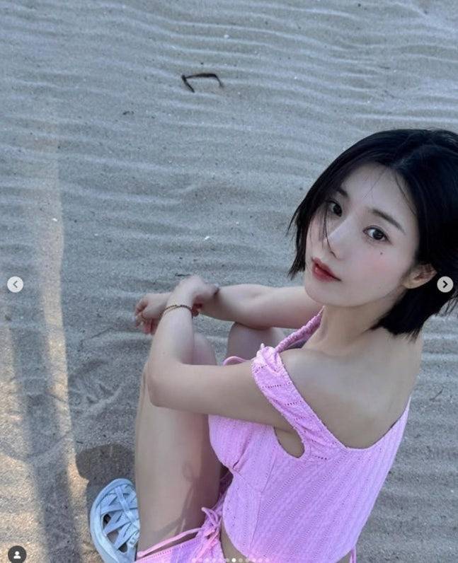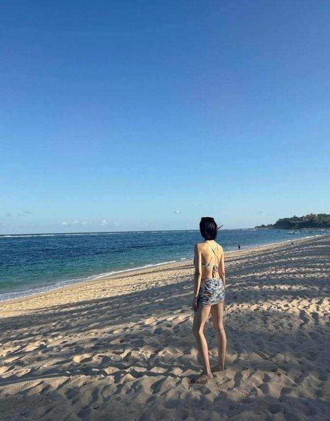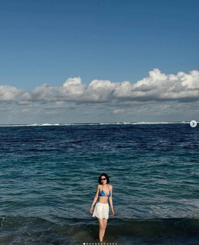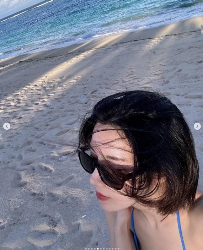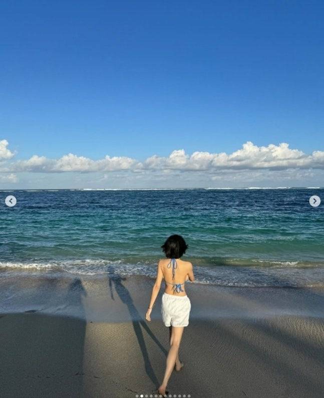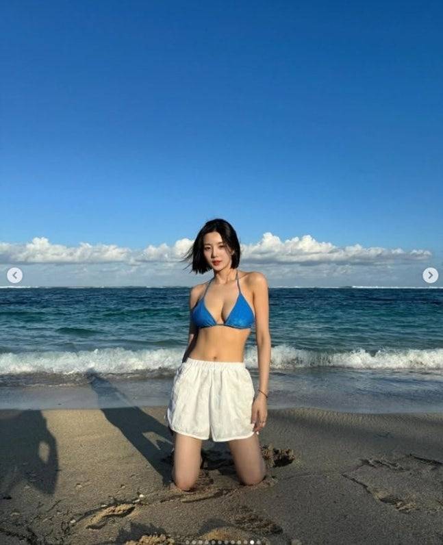 또 다른 사진에서는 플라워 패턴 투피스 원피스를 입고 고혹적인 분위기를 연출했는데요, 기존의 발랄한 이미지와는 또 다른 성숙미까지 느껴졌어요🌺 여기에 블루 계열의 비키니 착장도 공개됐는데, 푸른 바다와 어우러져 마치 패션 화보 한 장면처럼 시선을 압도했답니다.
