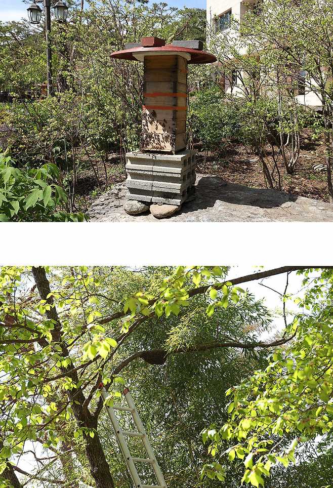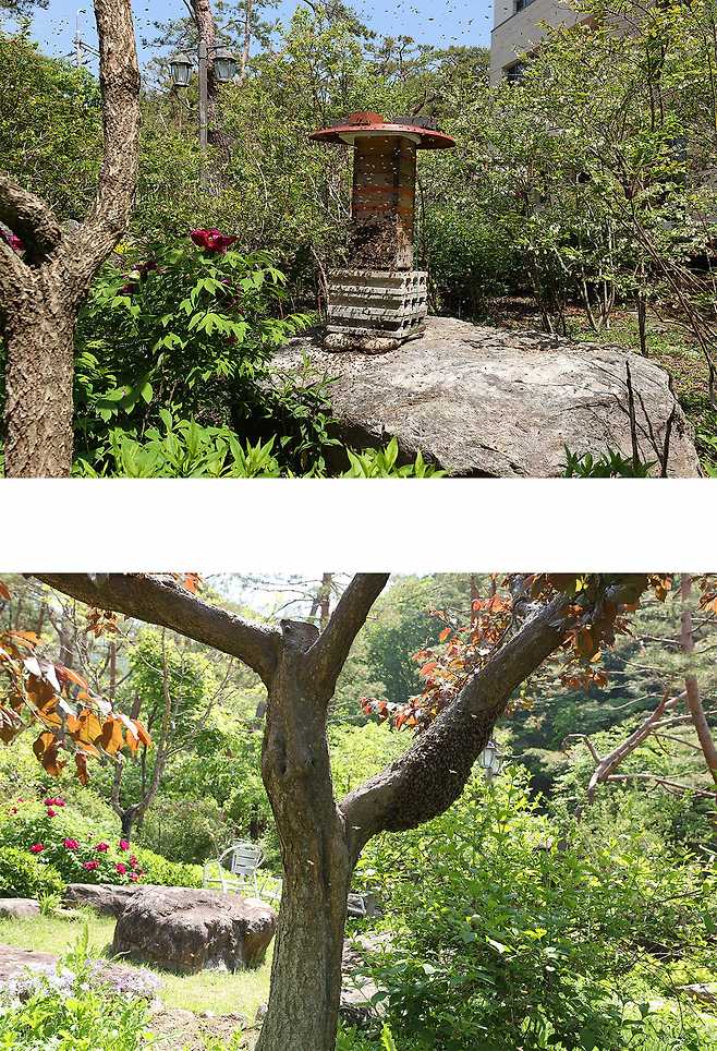 벌들은 1차 집결지로 천적에게 노출 되지 않는 나무 둥치 아래 쪽을 선호한다.