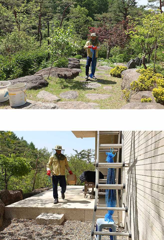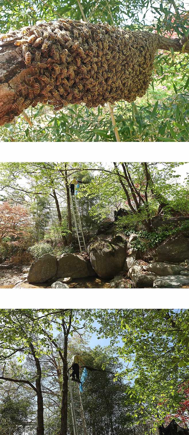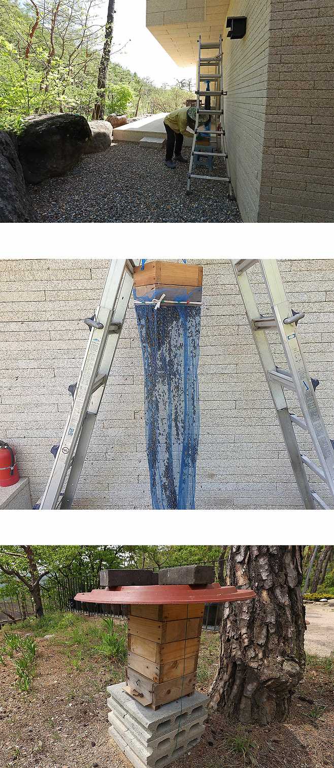 분봉을 할 때는 벌통집 가까이 접근해도 벌들은 이사 가는 데 집중하느라 여간해서 공격을 하지 않는다.