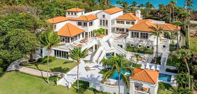해당 저택은 ‘팜비치’ 내에서도 일명 ‘억만장자 해변’으로 불리는 곳에 위치해 있다. 규모는 대지면적 1만2100㎡(약 3670평), 연면적 1417㎡(약 428평) 등이다. 내부는 침실 5개와 화장실 7개로 이뤄져 있다. 대지면적이 유독 큰 이유는 해변까지 전부 저택 부지로 포함돼 있기 때문이다. 덕분에 저택 마당에 개인 보트 정박 시설을 갖출 수 있었다.