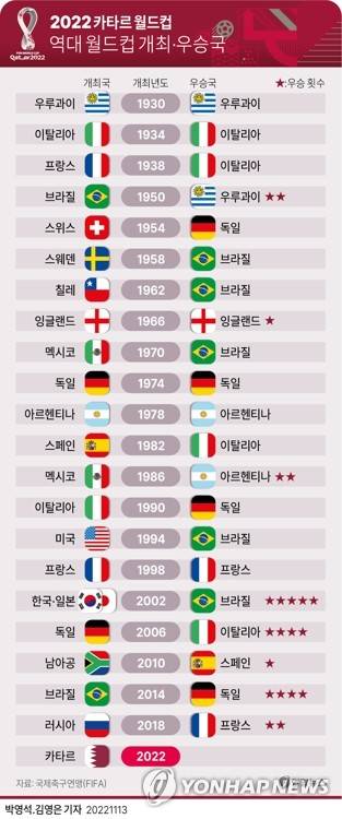 [그래픽] 역대 월드컵 개최·우승국