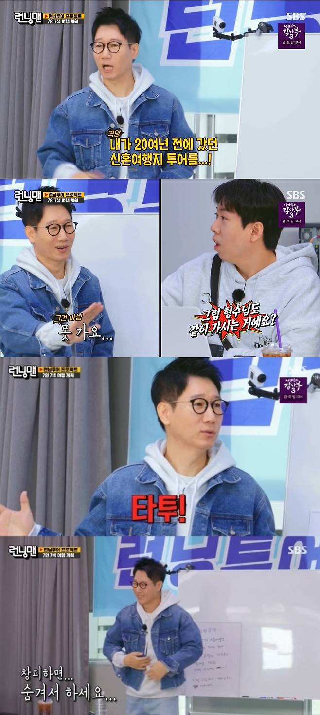 이에 유재석이 "경비는 어쩔 거냐"고 물었고, 지석진은 "그게 뭐가 중요하냐"며 무책임한 말을 내뱉어 또 한번 야유를 받았다. 마지막으로 지석진은 "여러분과 꼭 하고 싶은 게 있다"며 "멤버 전원 타투를 했으면 좋겠다"고 희망했다.