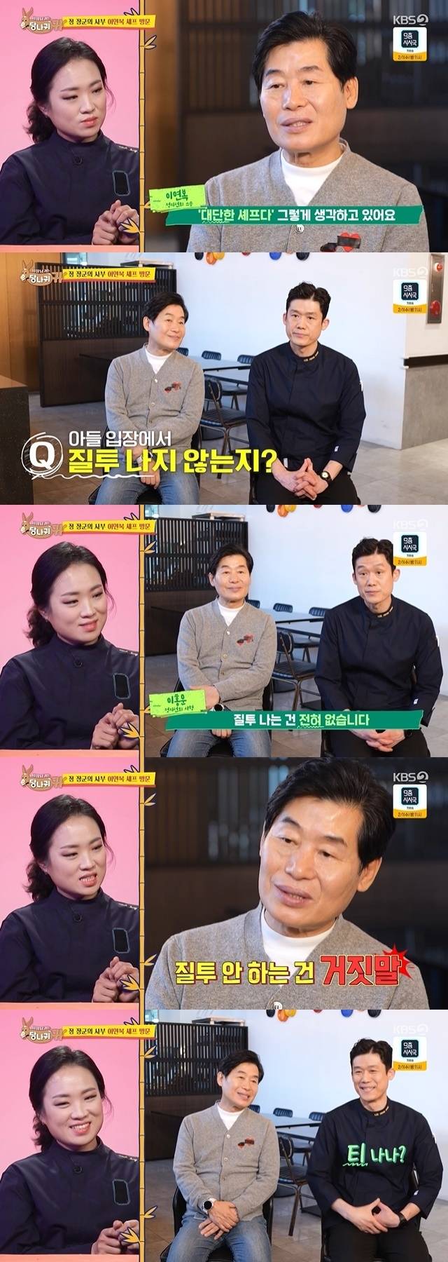 극찬 세례에 이홍운에겐 아들 입장에서 질투가 나지 않냐는 질문이 향했다. 이에 이홍운은 "질투 나는 건 전혀 없다. 승부의 세계는 냉정하다"고 쿨하게 답했으나, 이연복은 "질투 안 하는 건 거짓말이고 질투한다"고 폭로했다. 이홍운은 "티 나나?"라고 물으며 인정했다.