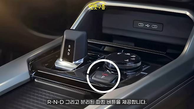 센터페시아 하단에는 듀얼 왼쪽의 전자식 기어 레버가 제공되고, 지점에 최적화된 원형 드라이브 모드의 다이얼이 있다. 드라이브 모드는 R-N-D와 별리된 파킹 버튼을 제공하여 헷갈리지 않게 구성됐다. 변속기 앞쪽에는 무선 충전 기능을 제공하고, 컵 홀더에 업계까지 제공되어 깔끔하게 정리가 가능할 것으로 보인다.