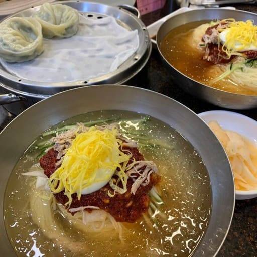 밀면과 함께 주문할 수 있는 수제 만두도 인기 메뉴입니다.