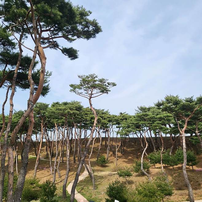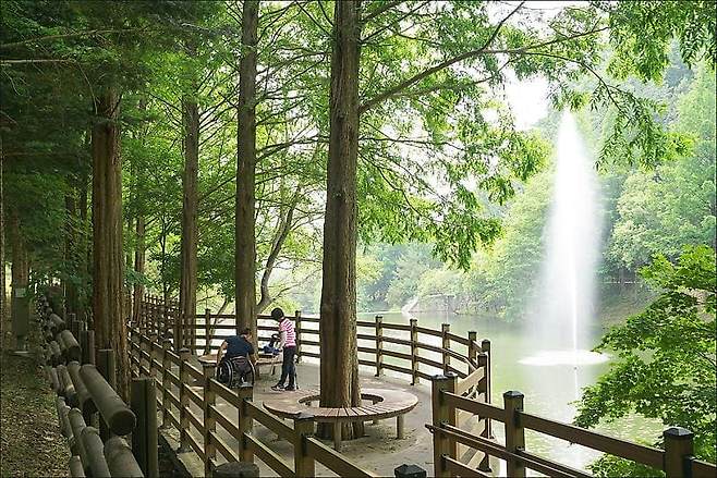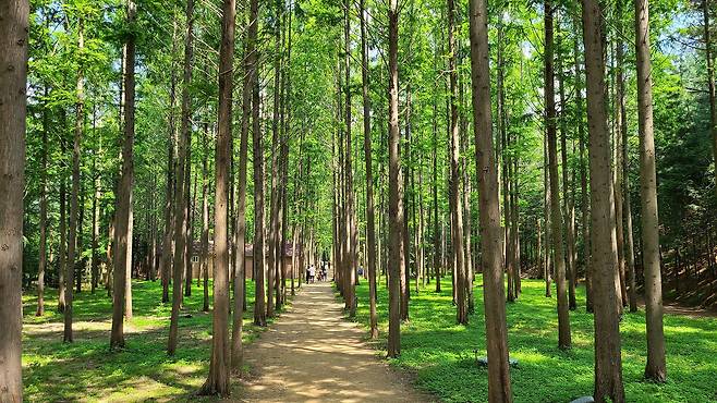 높게 뻗은 나무들이 빼곡하게 즐비해있는데요. 아직 수령이 15~20년에 불과하다고 알려져 앞으로 더 높고 굵게 숲을 형성할 것이 기대됩니다. 곳곳에 벤치가 있어 잠시 숲 속 힐링의 시간을 만끽하기에도 좋습니다.