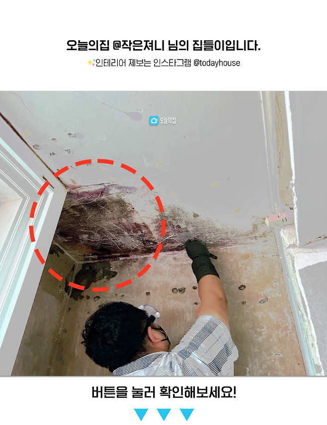 벽체 철거하고 나니 구석에서 발견된 곰팡이도 남편과 함께 셀프로 단열공정 전에 제거해줬어요.