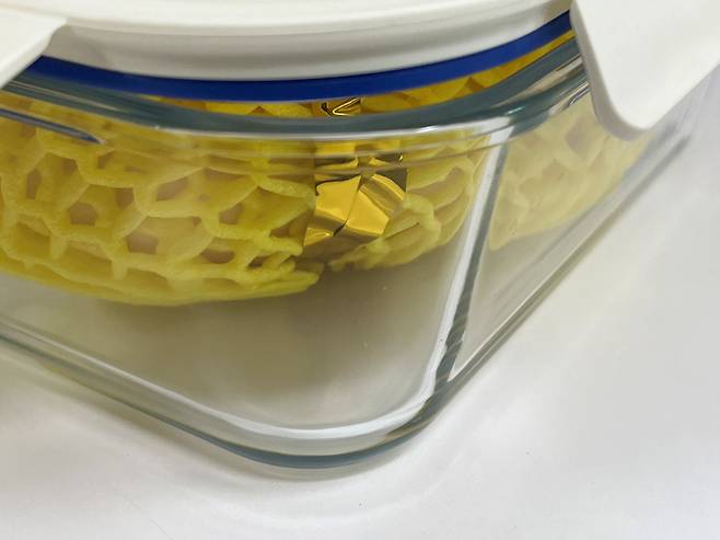 후숙이 조금 더 빠르게 촉진시키는 방법은 바로 밀폐용기를 활용하는 것입니다. 밀폐용기에 망고를 넣어 주세요.