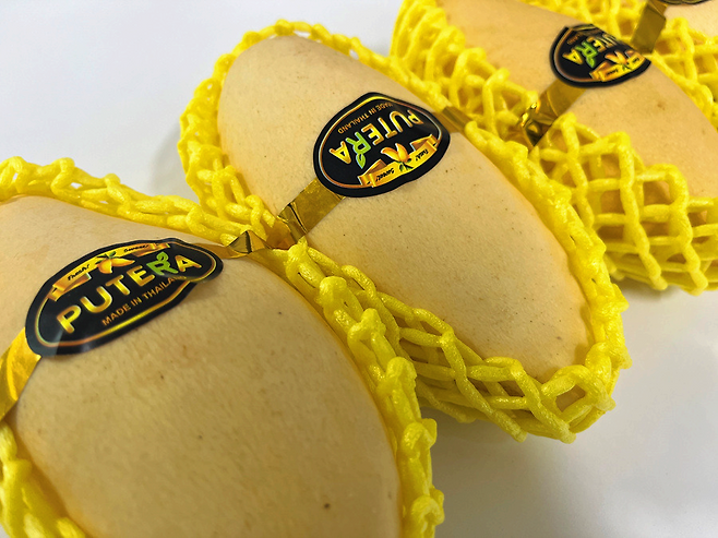 망고 위에 천으로 된 헝겊을 덮어 줍니다. 헝겊으로 덮으면 습기를 흡수하거나 조절하여 쉽게 물러지거나 곰팡이가 생기지 않습니다.