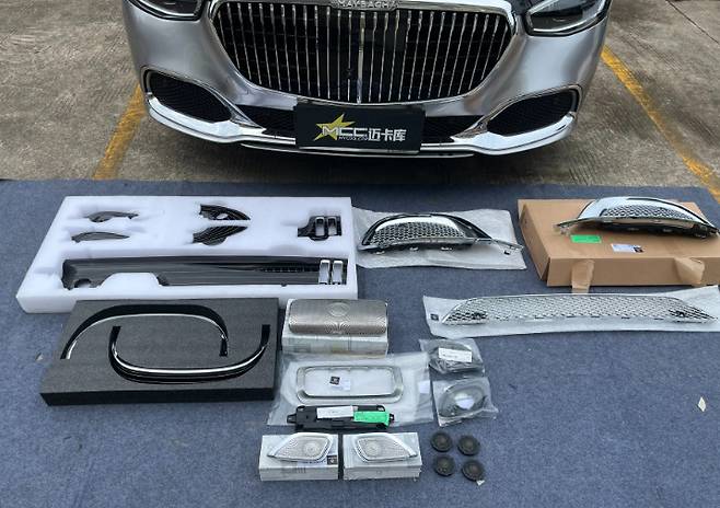 중국산 마이바흐 외장 부품을 장착해 겉모습만 고급 세단처럼 꾸며진 일종의 ‘가짜 마이바흐’다.