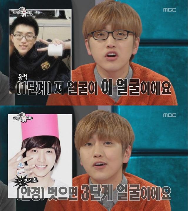 'B1A4'의 산들 역시 안유진과 같은 경우입니다. 산들 역시 데뷔 전 안경을 쓴 사진이 큰 화제가 되며 성형설이 돈 바 있는데요. 어찌나 억울했던지 MBC '라디오스타'에 출연해 즉석에서 일명 '마법안경'을 쓰며 과거로 회귀해 큰 웃음을 선사한 바 있지요.