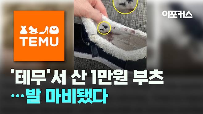 미국에 사는 한 여성이 중국 직구 쇼핑 어플리케이션 테무(Temu)를 통해 12달러, 한화로 1만6000을 주고 구매한 부츠를 신다가, 2000달러 약 267만원의 병원비와 평생 남을 심각한 흉터가 생겼다는 사연이 전해졌습니다.