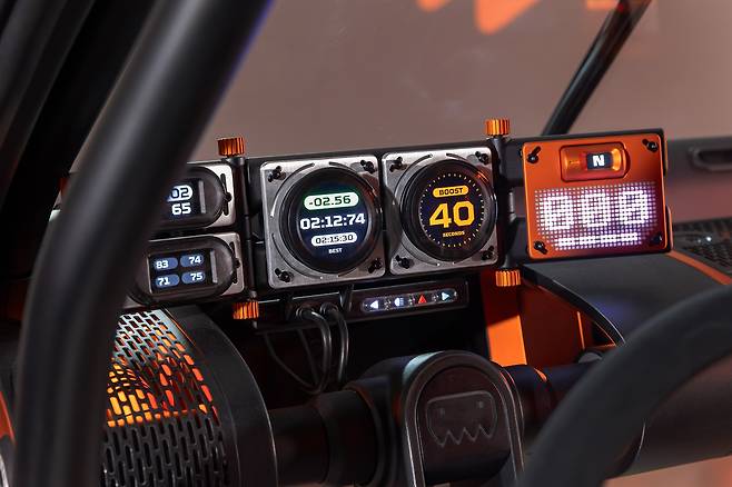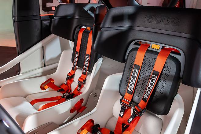내부는 버킷 시트, 롤 케이지, 특수 계기판이 있는 간소화된 레이아웃으로 몰입감 있는 드라이빙 경험을 제공한다. 조정 가능한 구성요소들은 "만들고, 즐기고, 부수고, 반복하라"는 철학에 맞춘 차고에서 만든 듯한 손맛을 느끼게 한다.