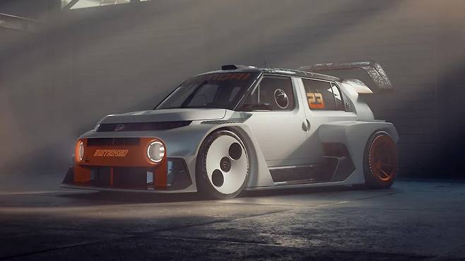 외관은 부드러운 화이트 색상에 대담한 오렌지 하이라이트로 마감되어 강렬한 시각적 정체성을 만든다. 여기에 반사형 레이스 슈트에 대담한 인스터로이드 레터링을 적용해 자동차 문화와 젊은 표현의 융합을 구현했다.