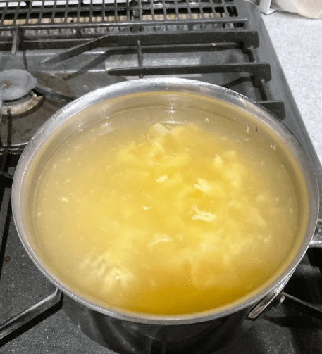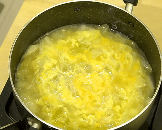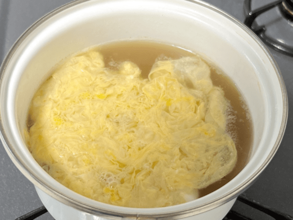 물이 끓기 시작하면 미리 풀어둔 계란을 냄비에 부어야 한다. 이때 가장 중요한 포인트는 계란을 절대 저어서는 안 된다는 점이다. 많은 사람들이 습관처럼 국을 젓게 되는데, 이럴 경우 계란이 퍼지면서 질감이 흐트러지고 전체적으로 국물이 탁해진다.