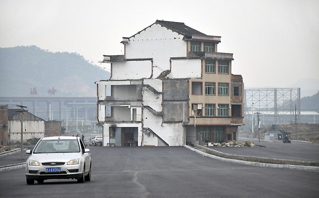고속도로 한복판에 고립된 집, 새로운 중국 사회의 풍경