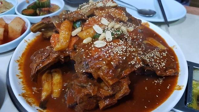 금천동 로타리쪽에 있음 여기는 다른곳에 비해 가격도 싼데 뼈를 정말 수북히줌 감자탕보다 뼈찜을 꼭 먹어야되는곳임 단데 매움 매콤한데 달아