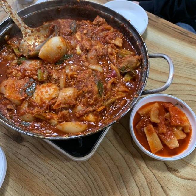 충북대 정문 먹자골목에 있음 청주에서 매운것좀 먹는다 하는 사람들은 다 아는 집일듯 해장국집인데 닭도리탕만 팜 밑반찬 깍두기가 끝임 4자리 뿐임 예약필수임 맛집 포스ㄷㄷ 캡사이신 매운맛이 아니고 고추가루가 걍 매운거 감칠맛 장난없음 세상에서 제일 대충 만든 계란 열개푼거같은 계란말이 줌