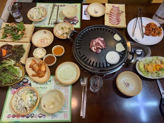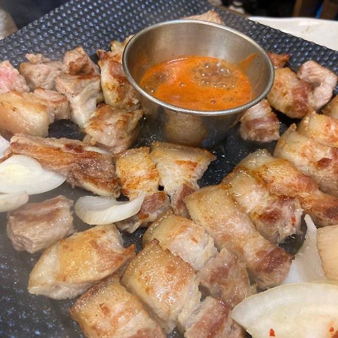 시내 홈플 뒷쪽 삼겹살거리안에 위치 사실 삼겹살 거리 안에 있는 식당들은 거의 고기질이 ㅅㅌㅊ인데 요즘 여기가 제일 핫해서 추천 초벌로 구워서 나오고 같이 먹는 갈치속젓에 찍어 먹으면 제주도 한번 갔다온거 같은 느낌 청국장맛집