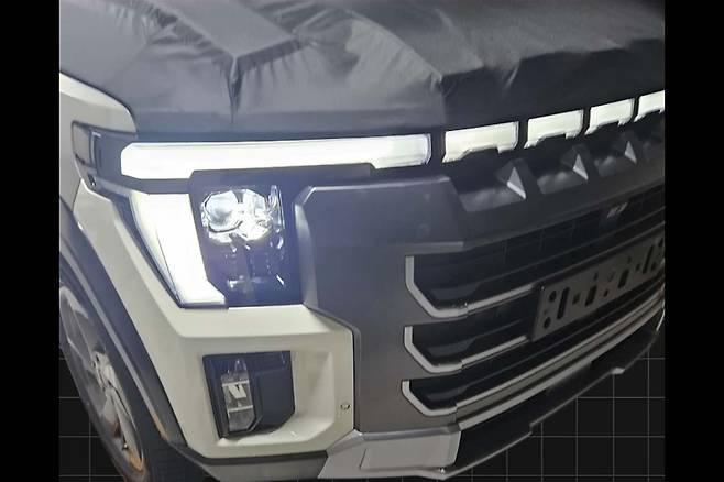 이번에 유출된 무쏘 스포츠 풀체인지 차량은 위장막 일부가 제거된 상태로 포착됐다. 앞서 티저 이미지를 통해 전면부 디자인 일부가 확인됐으나, 이번 사진을 통해 전면부의 헤드램프 디자인 디테일등 대부분을 확인할 수 있다.
