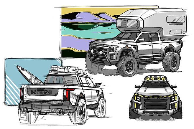 KGM은 앞서 픽업브랜드 ‘무쏘’를 런칭하며 차세대 픽업트럭 스케치 이미지를 공개하기도 했다. 당시 포드 F-150이 연상되는 과감한 스타일의 픽업 디자인이 공개되었는데, 해당 스케치 디자인은 차세대 무쏘의 기반이 될 예정이다.