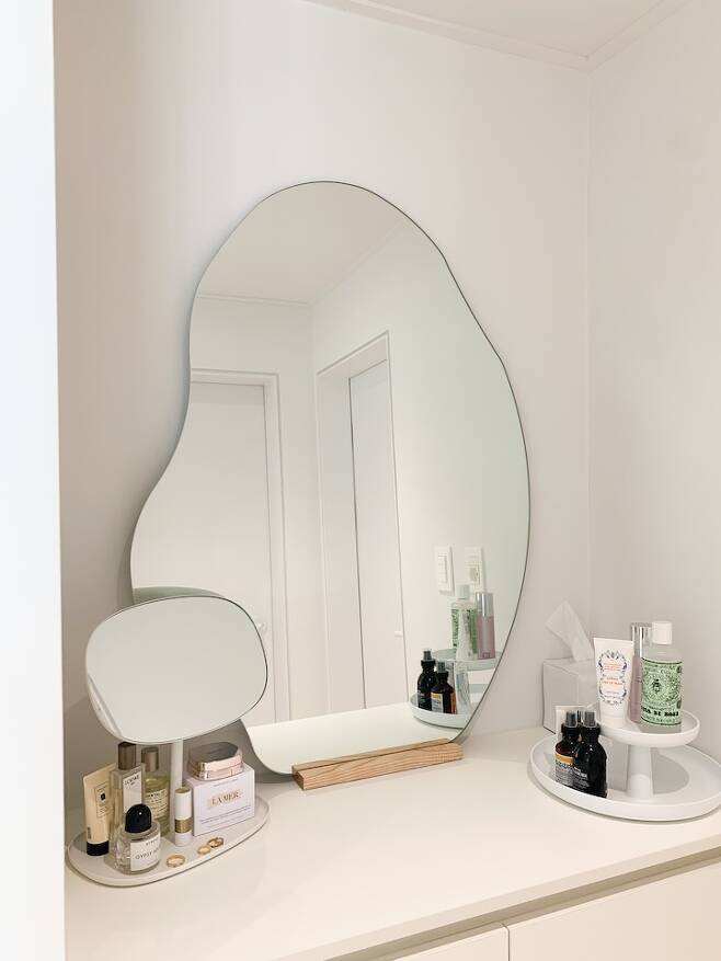 안방이나 작은방에 화장대를 설치하는 것보다 공간적으로 더 효율적일 거라 판단해 진행하게 되었는데요. 욕실과 가깝게 위치해 있으니 편리한 것은 물론이고 인테리어 효과까지 볼 수 있었답니다.