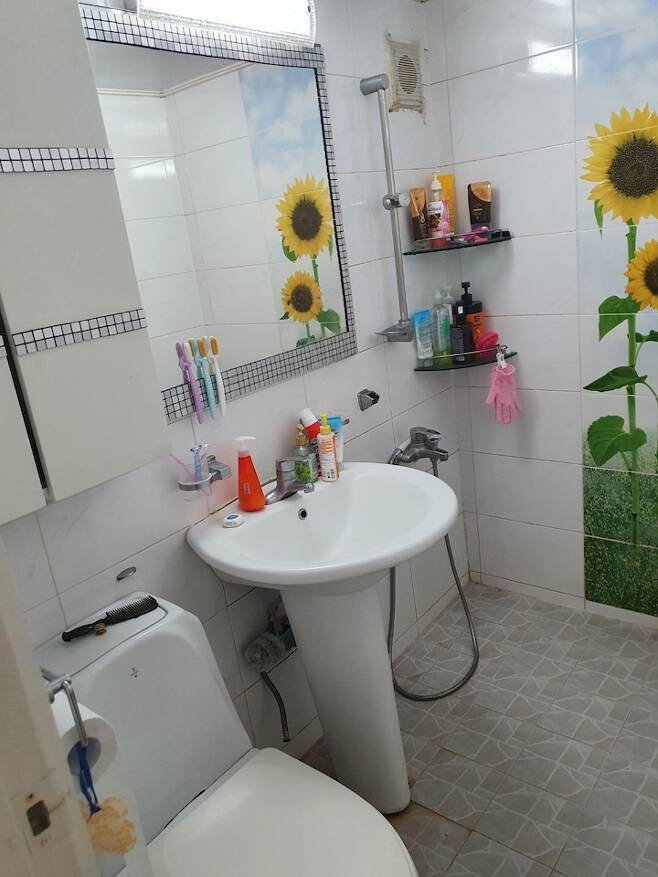 초기에는 샤워기 옆 파티션을 설치하려고 했는데, 예상보다 더 협소한 욕실이라 파티션을 설치하게 되면 체격이 큰 저희 남편의 경우 몸이 구겨진 채로 샤워를 해야 한다는 이야길 듣고 재빨리 포기했답니다.ㅎㅎ