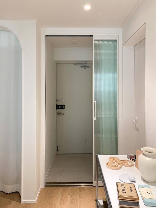 시공을 마친 늦여름부터 초가을까지는 중문이 없는 불편함을 크게 체감하지 못한 채 잘 지냈던 터라 중문 설치를 차일피일 미루고 있었는데요. 날이 쌀쌀해지기 시작하면서부터 현관을 통해 들어오는 찬 기운이 온 집안을 메우는 것을 경험한 뒤로 초고속으로 중문을 설치하게 되었답니다.