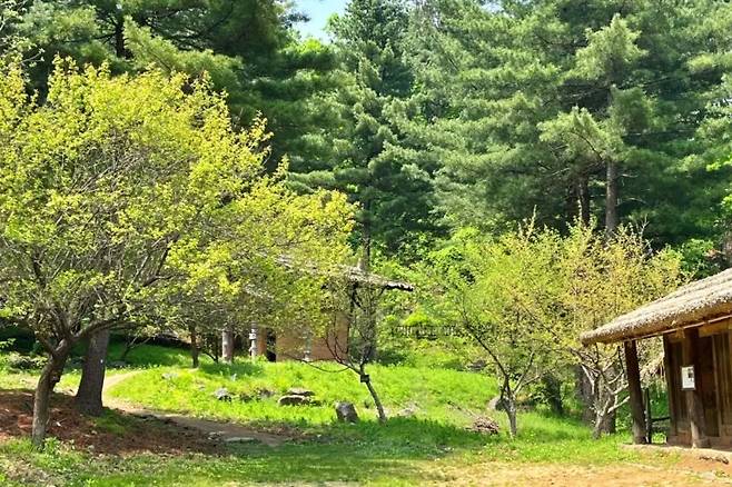 하산길에는 색다른 테마가 기다리고 있다. 1960~70년대 축령산 일대에 실제 존재했던 화전민 마을을 재현한 구간이다. 너와집, 귀틀집, 숯가마 등 당시 삶의 흔적을 복원해놓은 이곳은 짧은 역사 산책길이 되기도 한다.
