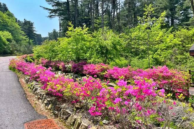 전체 코스는 왕복 약 40분 정도로, 부담 없는 거리임에도 오감이 모두 충족되는 구성이다. 맑은 공기, 철쭉 꽃길, 잣나무 향기, 조용한 인공호수, 그리고 사람 냄새 나는 화전민 마을까지—