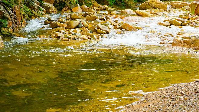 시원한 기운이 시선을 타고 전해져, 직접 물에 들어가지 않아도 더위가 가시는 듯하다. 애기소 주변에는 얕은 여울과 깊은 소가 골고루 분포해 있어, 아이들은 안전하게 물놀이를 즐기고 어른들은 깊은 곳에서 더위를 식힐 수 있다.