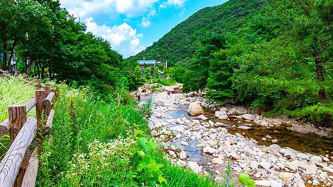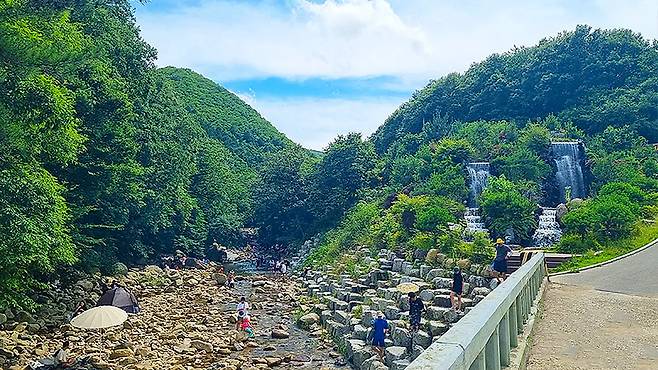 울창한 참나무와 서어나무가 만든 초록 터널 속을 걸으면, 햇볕이 나뭇잎에 가려지고 계곡 바람이 땀을 식혀준다. 물놀이 전후로 가족이나 연인과 함께 걷기 좋은 이 길은, 물소리와 새소리가 어우러져 여름에도 쾌적한 산림욕을 즐길 수 있다.