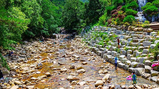 내원암 계곡의 즐거움은 물놀이에서 끝나지 않는다. 계곡을 따라 ‘만보등산로’라 불리는 숲길이 이어져 있어 가벼운 트레킹을 즐길 수 있다.