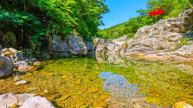 시원한 물소리와 짙은 녹음 속에서 보내는 시간은 복잡한 일상에서 벗어나 진정한 휴식을 선사한다.
