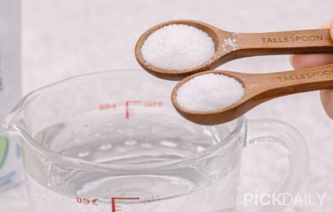 식초 냄새가 싫거나 마침 없다면 구연산을 쓰면 됩니다. 구연산도 대표적인 산성 성분이라 석회질을 분해하는 원리가 동일한데요. 따뜻한 물 한 컵에 구연산 2스푼을 넣고 알갱이가 남지 않을 때까지 잘 녹여주세요.