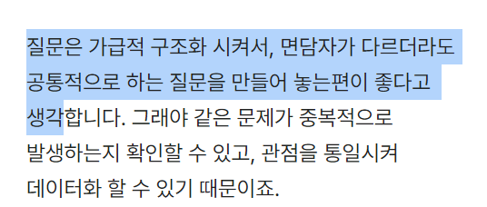 실제 구글은 긍정적인 변화를 만들었는데요. 퇴직자들의 데이터를 분석해 출산한 여성의 이직률이 직원 평균 이직률의 2배 이상이라는 것을 알고 출산휴가 정책을 바꿨습니다. 5개월 유급휴가를 제공하고 급여 및 수당을 100% 지급했습니다. 제도 변경 후 출산 직후 여직원 퇴사율이 50% 감소했습니다. 면담이 단순히 면담으로 그치지 않도록, 실무자는 물론 기업 경영진 역시 퇴사 면담의 중요성을 깨닫고 변화를 실행해야 하는 이유입니다.