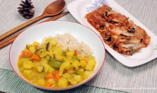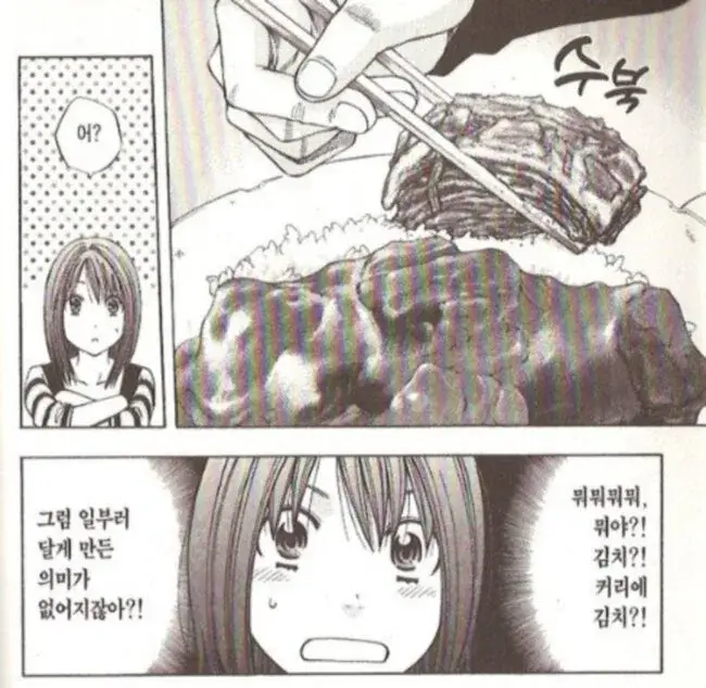 카레랑 김치랑 먹기