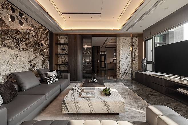 거실의 압도적인 대리석 벽면