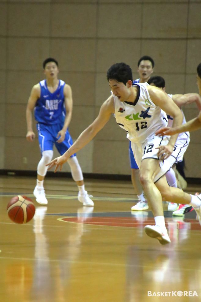 단국대도 연속 5점을 올리면서 맹추격했다. 김두현(180cm, G)은 3점포로 경기 시작을 알렸다. 홍찬우(196cm, F)는 빠르게 골밑을 파고들었다. 홍찬우는 득점 후 좋은 수비도 보였다.