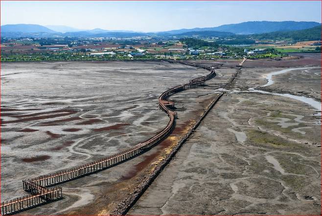 1.5km의 목재 해상교: 폭 2.4m, 총연장 1.5km에 달하는 국내 최장 규모의 해상 보행교는 물 빠진 갯벌의 결을 가장 가까이서 관찰할 수 있는 특별한 통로입니다. 발밑으로 시시각각 변하는 갯벌의 무늬와 멀리 이어지는 수평선을 바라보며 걷는 경험은 마치 바다 위를 유영하는 듯한 착각을 불러일으킵니다.