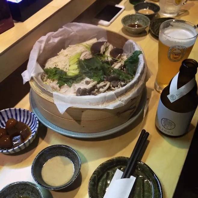 신라호텔 일식당 셰프와 청담동 개인 일식당 셰프였던 두 사람이 함께 운영하는 일식집으로, 신논현에서 조금 떨어진 조용한 주택가에 위치한 일본식 선술집이다. 11가지 사케와 고구마, 보리 등이 재료인 12가지 일본식 소주가 있어 애주가들에게 인기가 많다. 커다란 나무 찜 솥에 담겨 그대로 나오는 ‘돼지고기 찜 샤브’가 대표메뉴. 다양한 버섯, 배추, 숙주, 가지, 얇은 돼지고기 등이 어우러진 찜 요리로 함께 나오는 특제 소스를 곁들여 먹는다. 담백하고 순한 맛으로 주로 술을 한 잔 하는 손님들의 속을 포근히 달래 준다. 작지만 아늑한 공간과 분위기로 오붓한 식사를 즐기는 단골 손님이 많은 곳이다. 좌석 수가 적어 예약이 힘들고 대기 줄이 긴 편이니 참고 할 것.