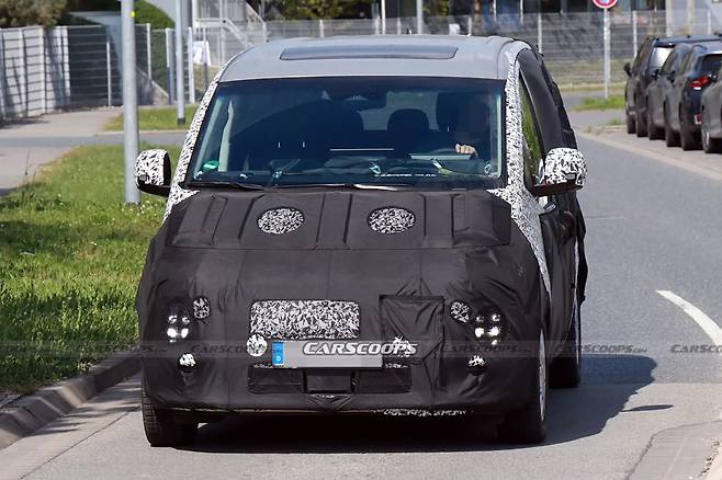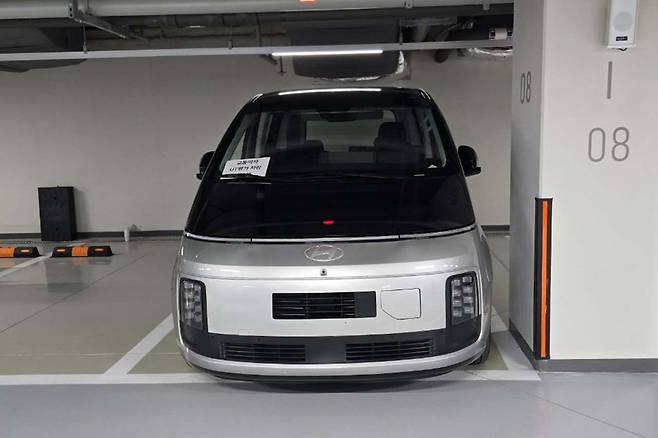 다만 그릴을 없애고 운전석 쪽에 충전구를 적용해 전기차임을 확인시켰다. 헤드램프는 스타리아 라운지 모델과 유사하며, 테두리 커버와 내부 패턴을 약간 달라 보이며, 포착된 테스트카에는 6홀 휠이 적용됐다.