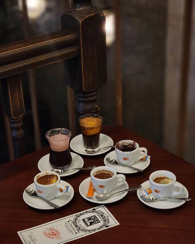반가운 편지를 열어볼때의 설렘을 컨셉으로 한 에스프레소 바. 낡은 브라운 컬러의 장식장, 빛바랜 편지지와 소품들이 공간에 감성을 더한다. 종이에 주문을 적어 건네면 도장을 찍어주고, 찾을땐 본인의 메일함에서 커피를 받아가는 시스템이 재미있다. 에스프레소에 버본 위스키와 블루베리 소르베와 폼을 더한 ‘블루베리 버본’이 시그니처로 이곳에서만 맛볼 수 있는 독특한 풍미를 자랑한다.